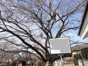 重機が入らない施設では、ツリークライミングのロープ作業をおこなう。